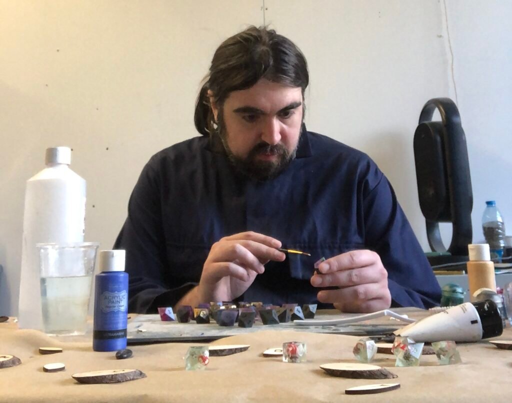 A player of RPGs since 2017 my dice-making journey started in 2020 when I co-founded Enifael Art during lock-down in 2020. From there, Enifael and I ran our first Kickstarter, D10s by Enifael in 2021 and launched the Enifael Art website and Etsy pages in 2022.